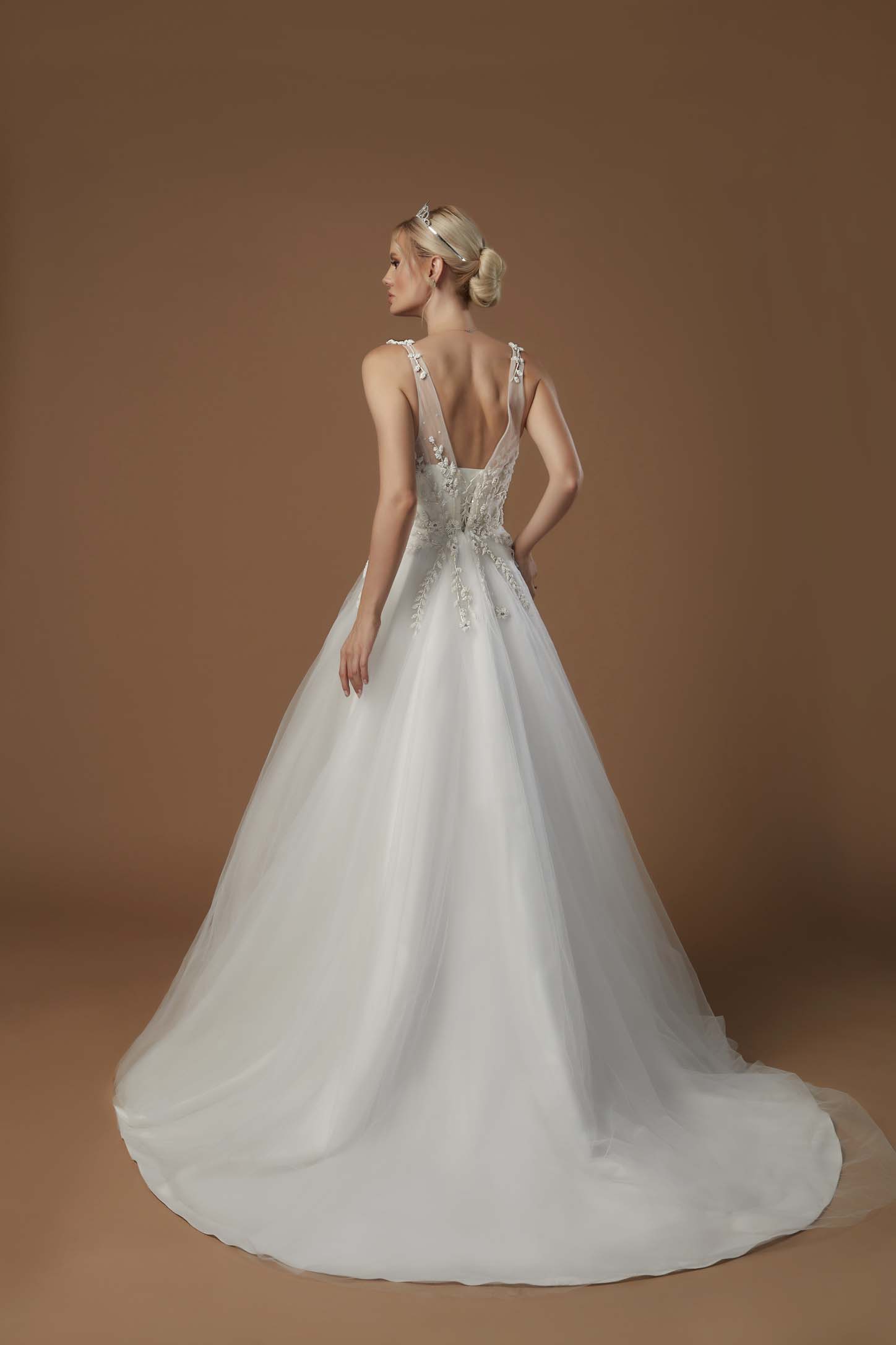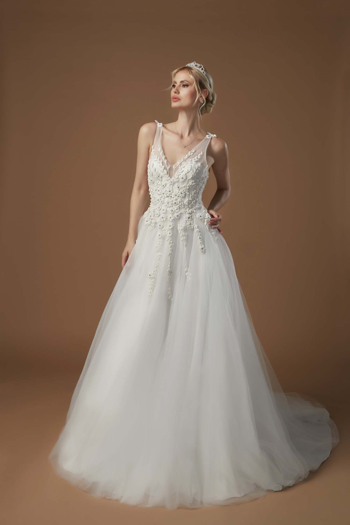Nakışlı ve kristal boncuk işlemeli gelinlik